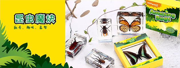 昆蟲魔塊系列產品,是由昆蟲包埋標本配套觀察工具組成。標本晶瑩通透、精致小巧,昆蟲自然真實、栩栩如生,激發孩子的無限好奇。通過對昆蟲標本的觀察、認知,培養孩子的興趣愛好、觀察能力和探索能力。