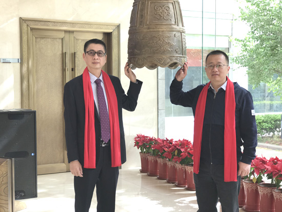總公司董事長劉東幸和副董事長施兵共同敲響了掛牌銅鑼,共同見證了這具有歷史意義的一刻。