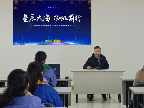 2022年1月28日,南寧千帆教學(xué)科技有限公司2021年度總結(jié)暨表彰大會隆重舉行,認真總結(jié)2021年度取得的各項成績及
